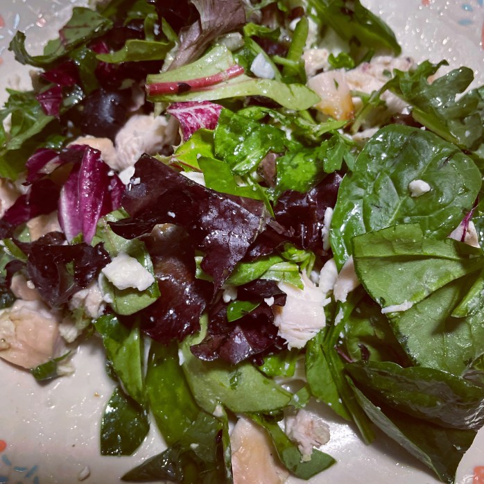 This doesn’t have to be hard. You just have to start. I am back eating a ketogenic diet since October 1, and the way I’ve done it alongside this blogging challenge is by taking pictures of my meals and encouraging myself to keep going. I also took a picture of my vitamins on day one of taking a new supplement that I used as the catalyst for finally taking the plunge, versus what I am on now, 25 days later. I am down 12 pounds, haven’t had a single flare up, am exercising and getting more active, and my brain feels better than it has since stopping eating a healthy keto diet. (Yes, I choose to eat a lot of salads because I don’t love eating a lot of meat. But this isn’t what keto looks like for everyone, and NOT EVERYONE with Chron’s will have the same results I’ve had on it. That’s why we need a health team.)